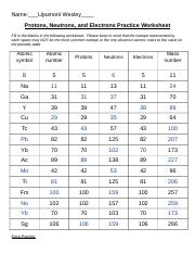 Free protons neutrons and electrons practice worksheet answers