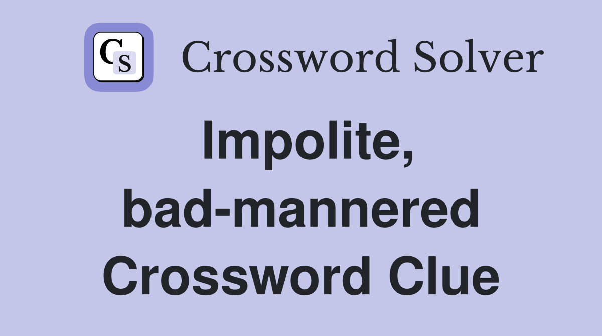 Impolite bad mannered Crossword Clue Answers Crossword Solver