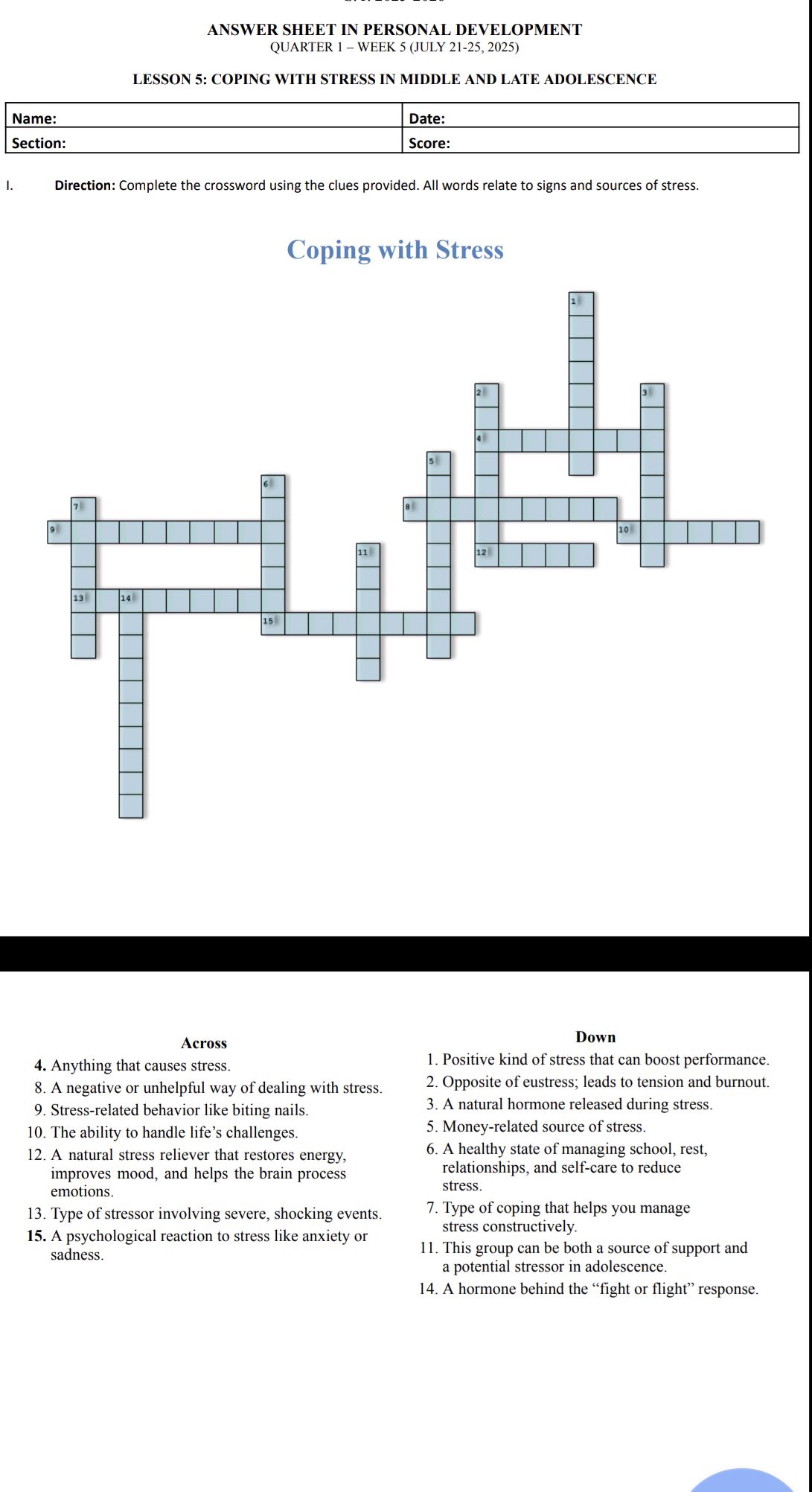 Direction: Complete the crossword using the StudyX
