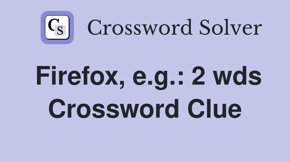 Firefox e g : 2 wds Crossword Clue Answers Crossword Solver