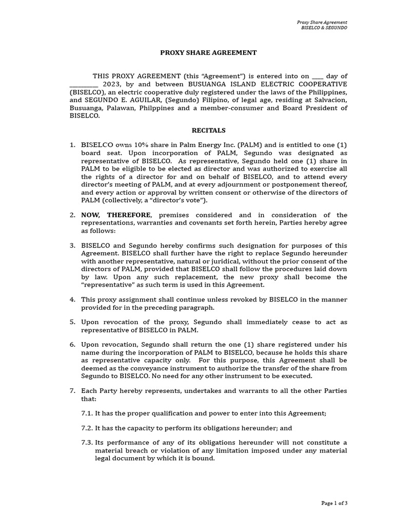 Proxy Agreement Template