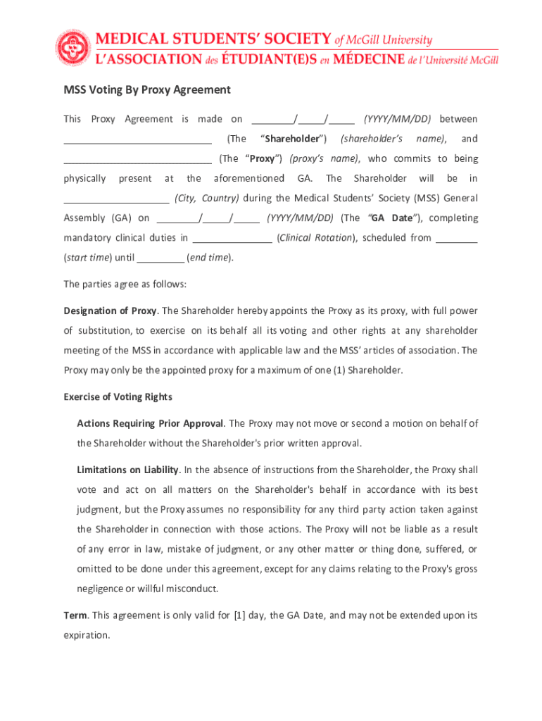 Fillable Online MSS Voting By Proxy Agreement Medical Students