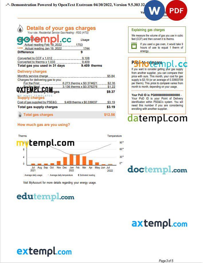 USA New York PSEG utility bill Word and PDF template 5 pages 3 by
