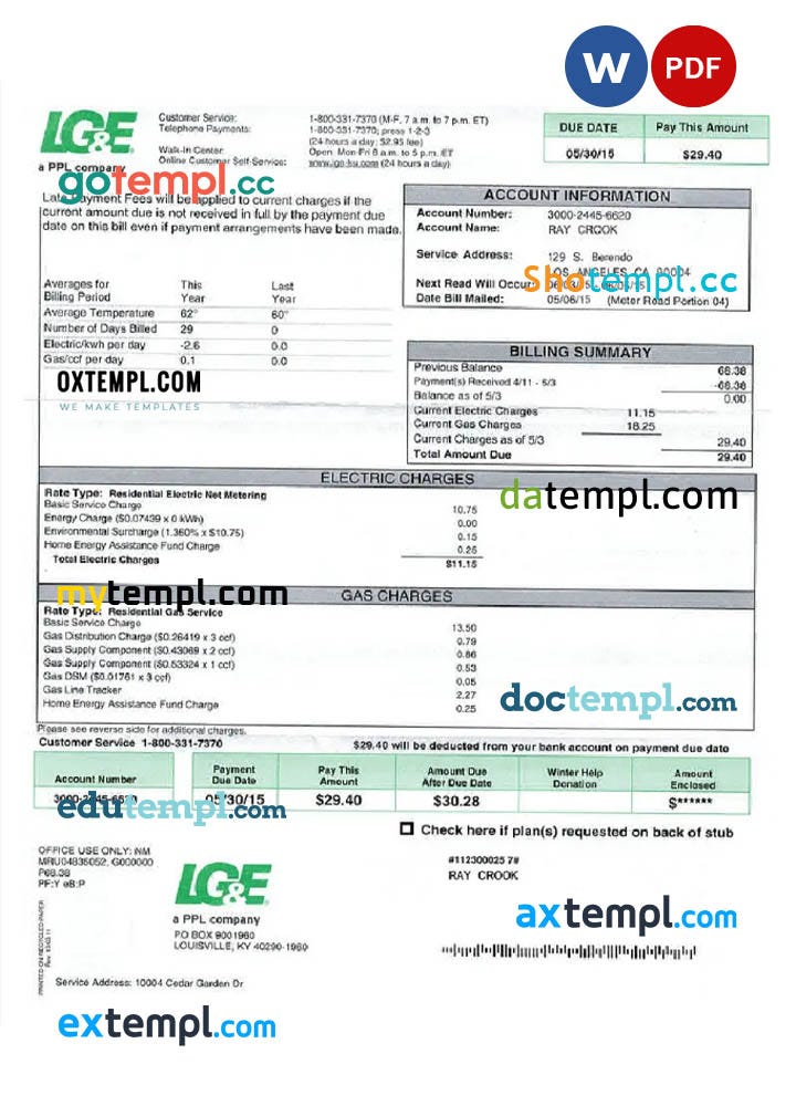 USA LG E utility bill PDF and Word download template by Intemplstore