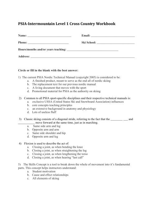 (PDF) PSIA Level 1 Workbook Level 1/PSIA Attend Level I Assessment