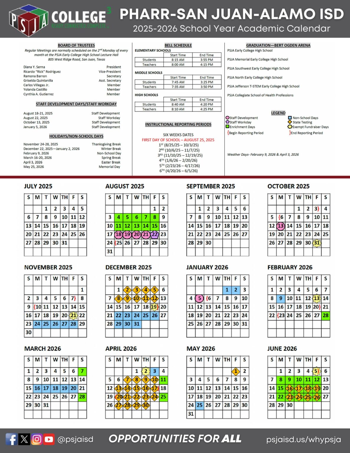 PSJA ISD PHARR SAN JUAN ALAMO School Calendar 25 26 EduCounty