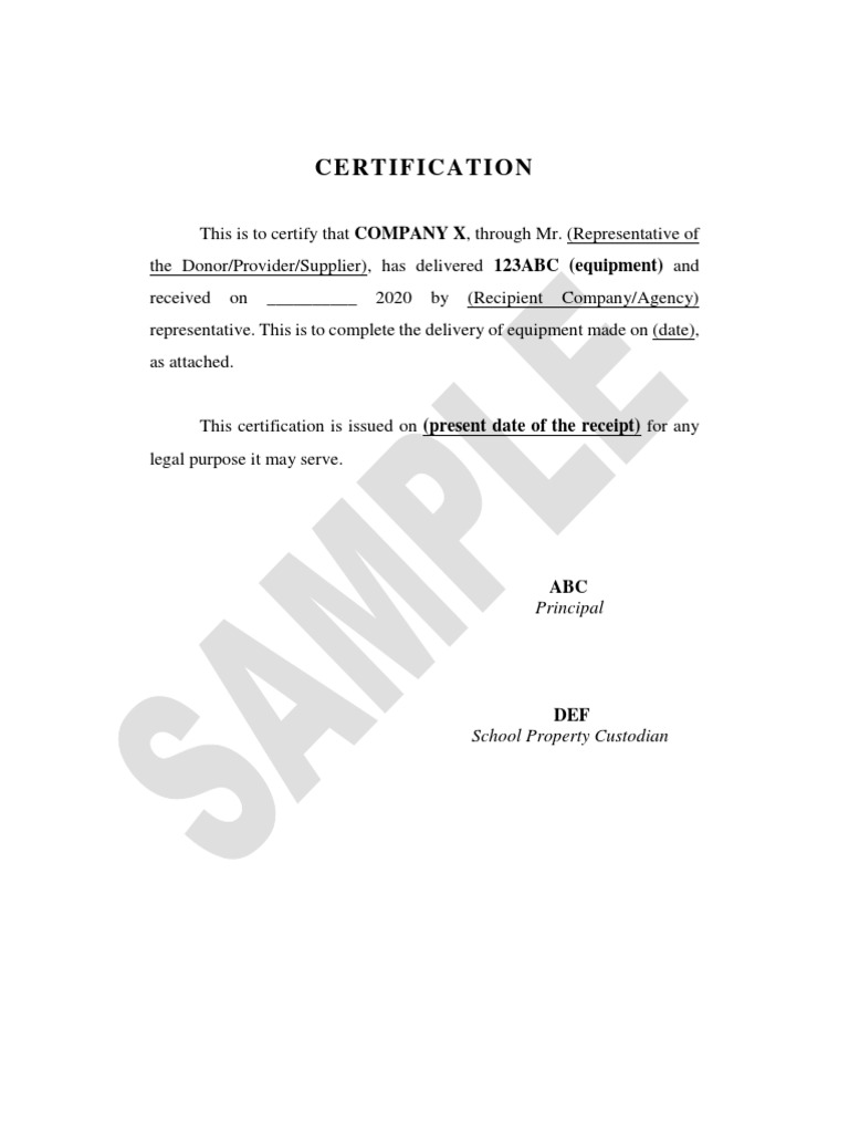 Sample Certification of Receipt PDF PDF