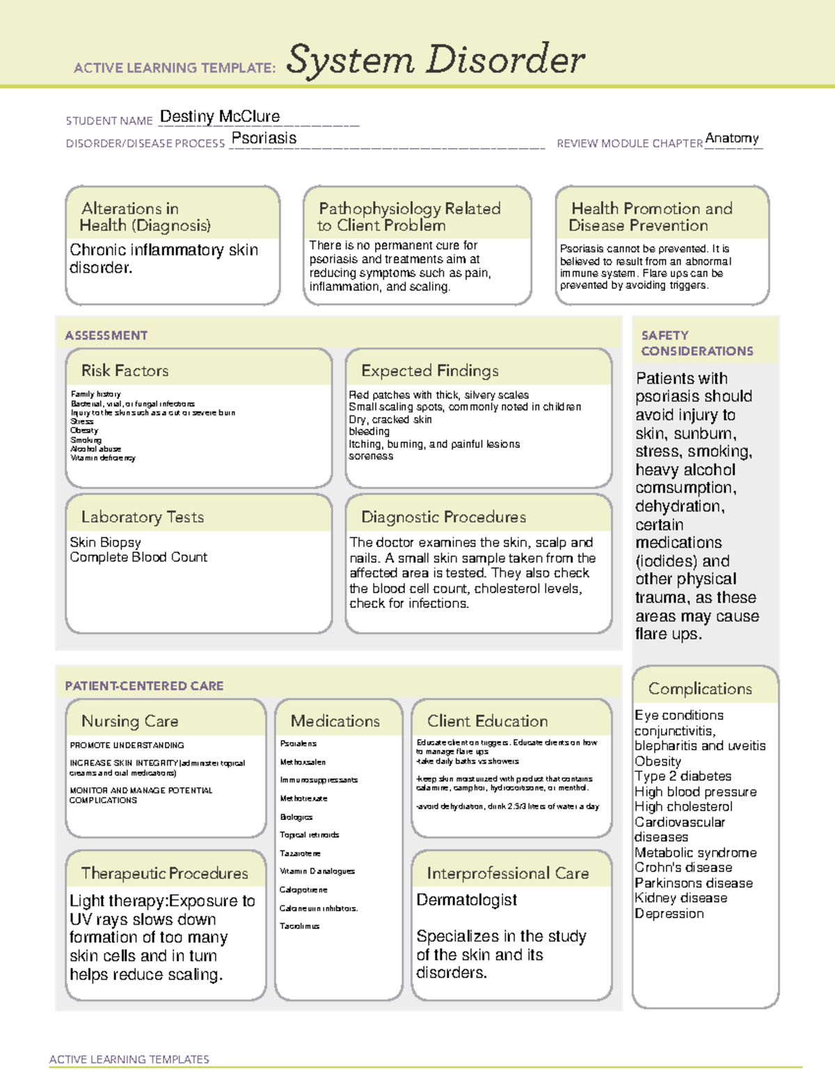 Active Learning Template: System Disorder Psoriasis Overview Studocu