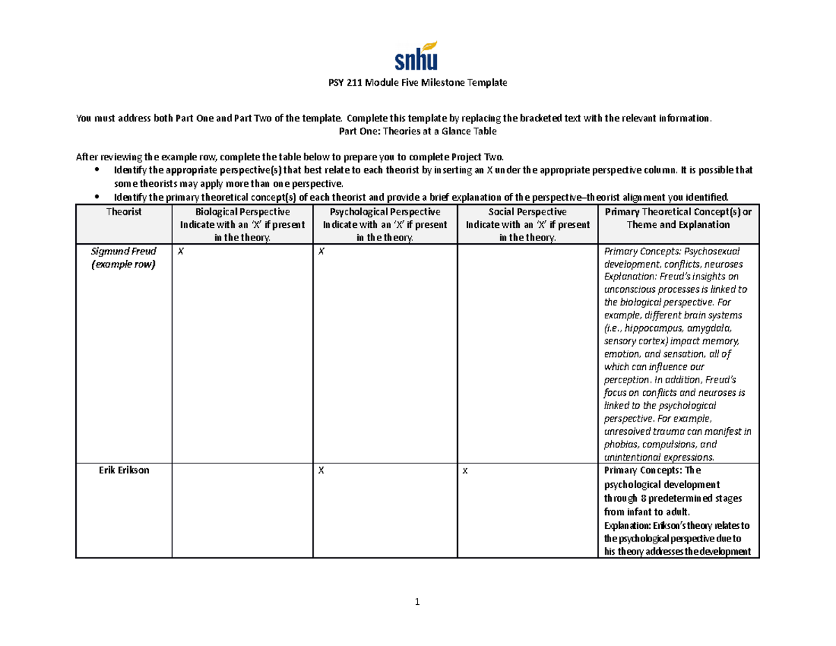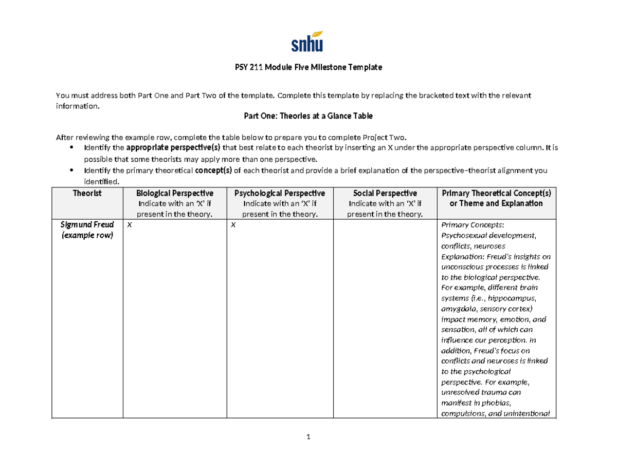 PSY 211 Module Five Milestone Template PSY211 SNHU Studocu