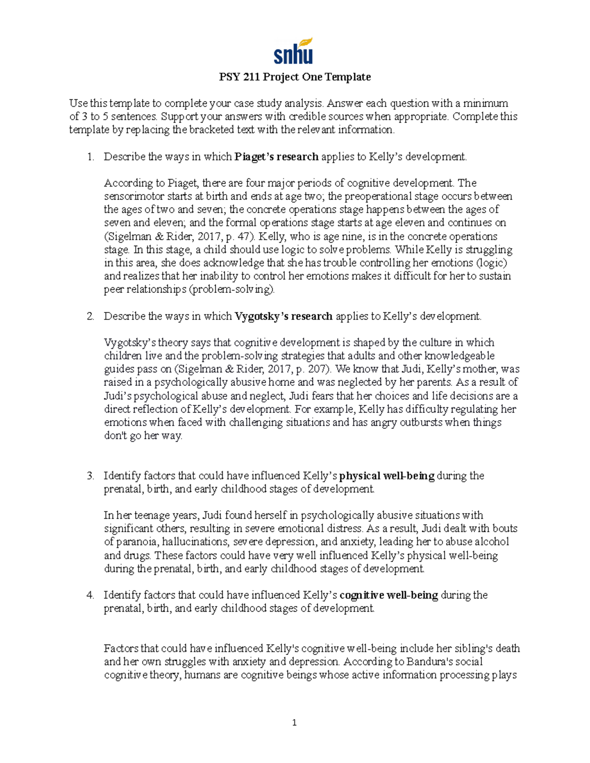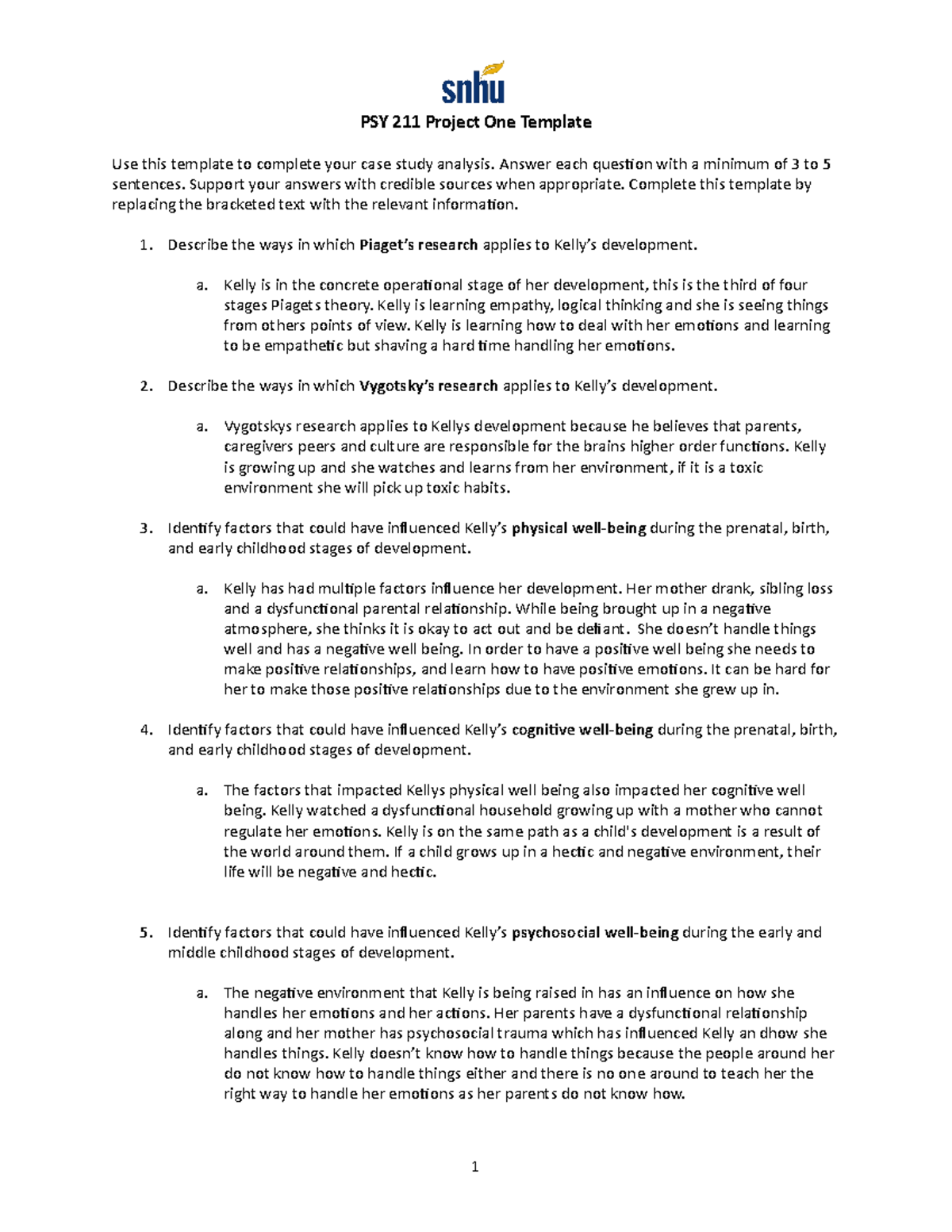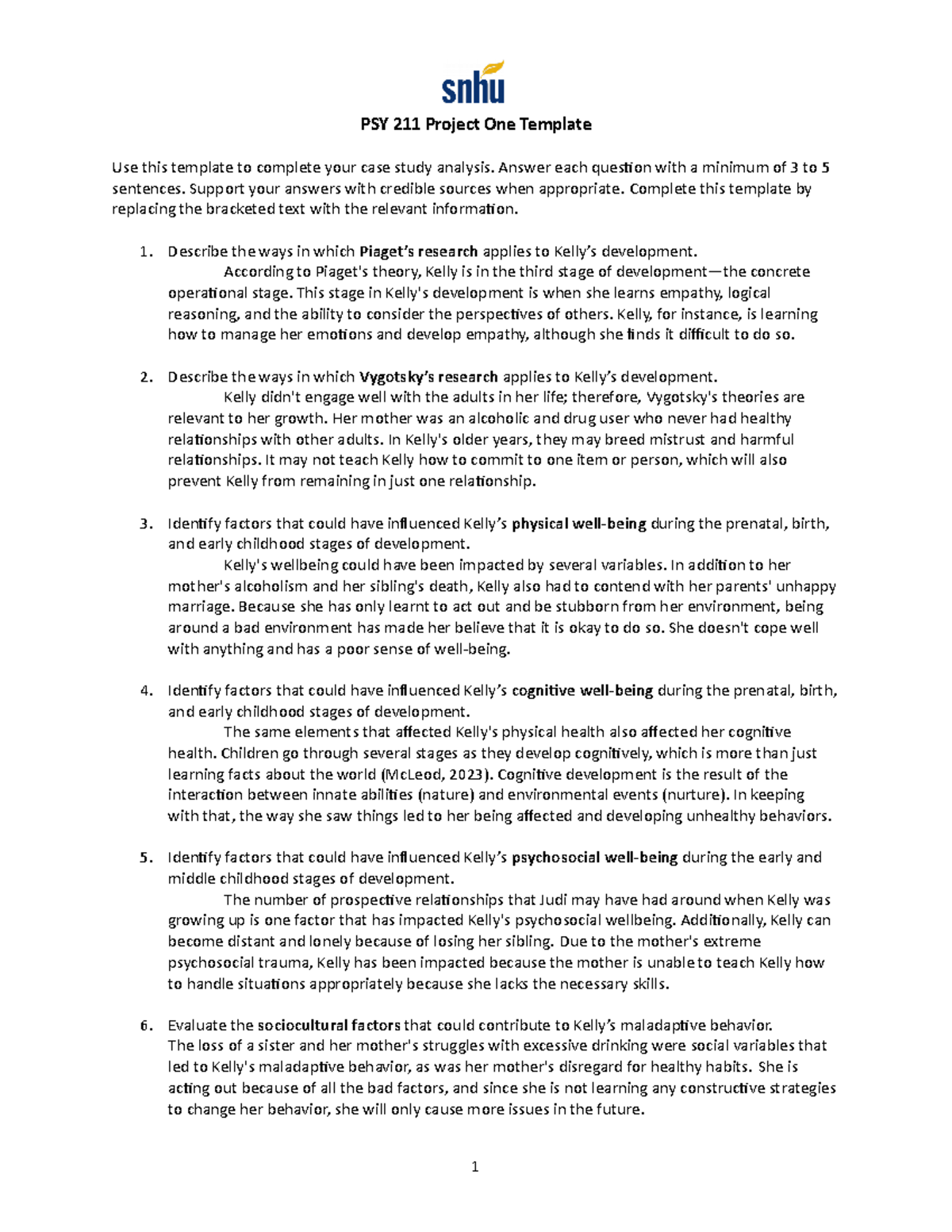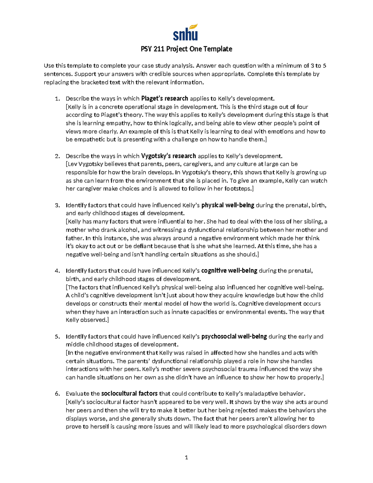 PSY 211 Project One Template psy 211 SNHU Studocu
