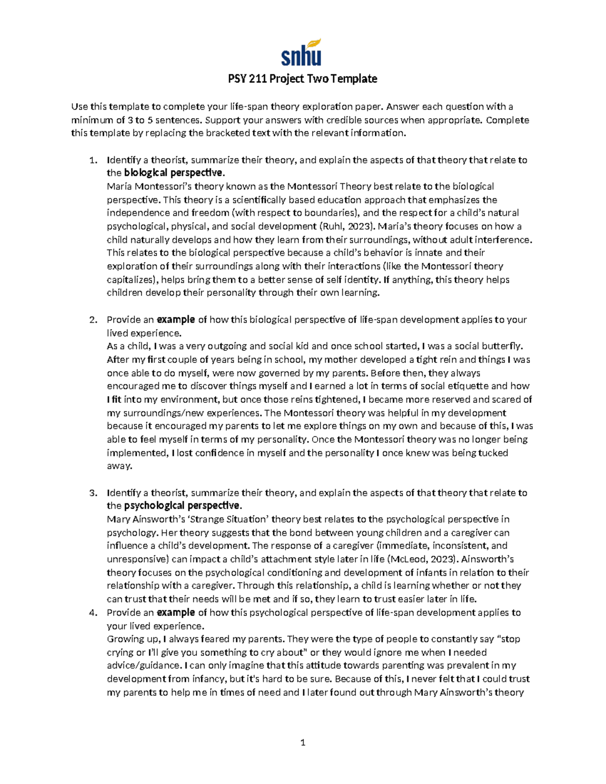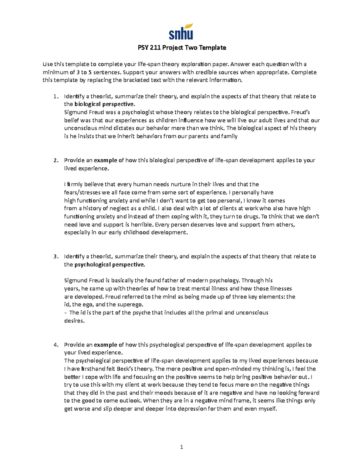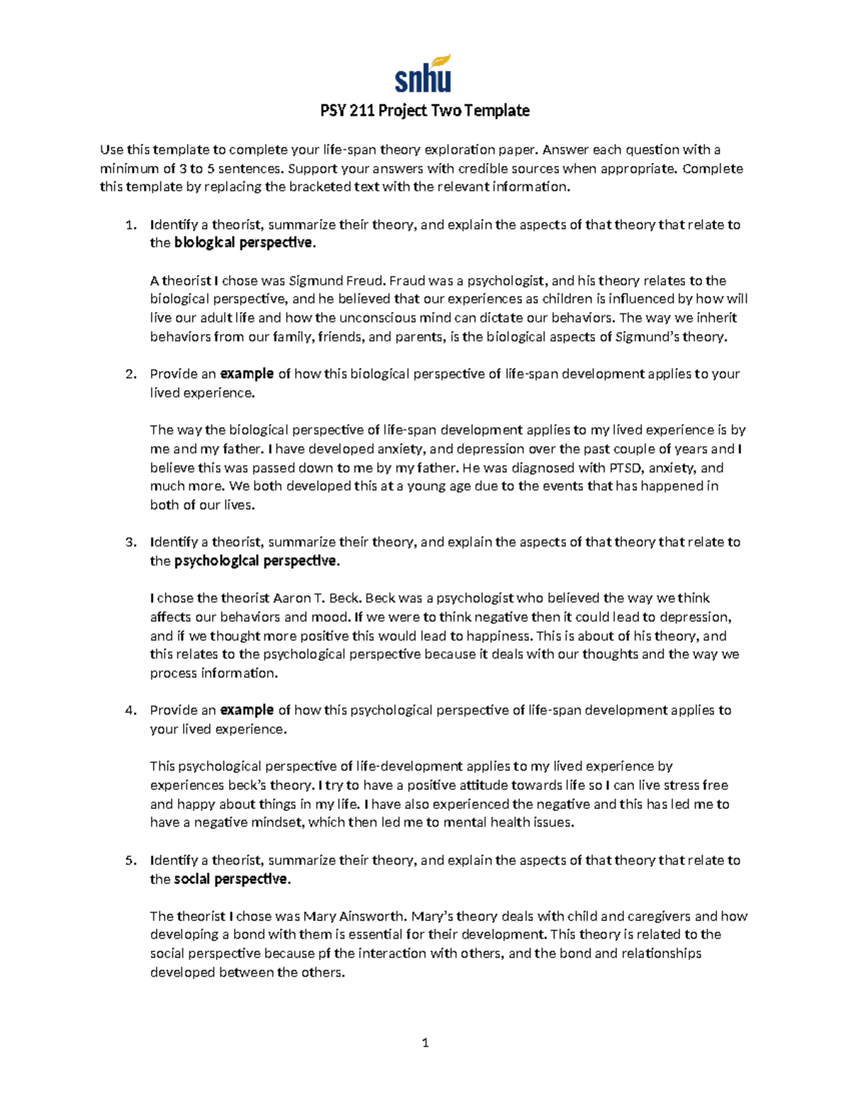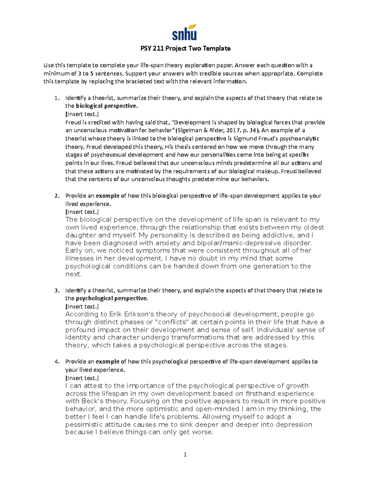 PSY 211 Project Two: Life Span Theory Exploration Template Studocu