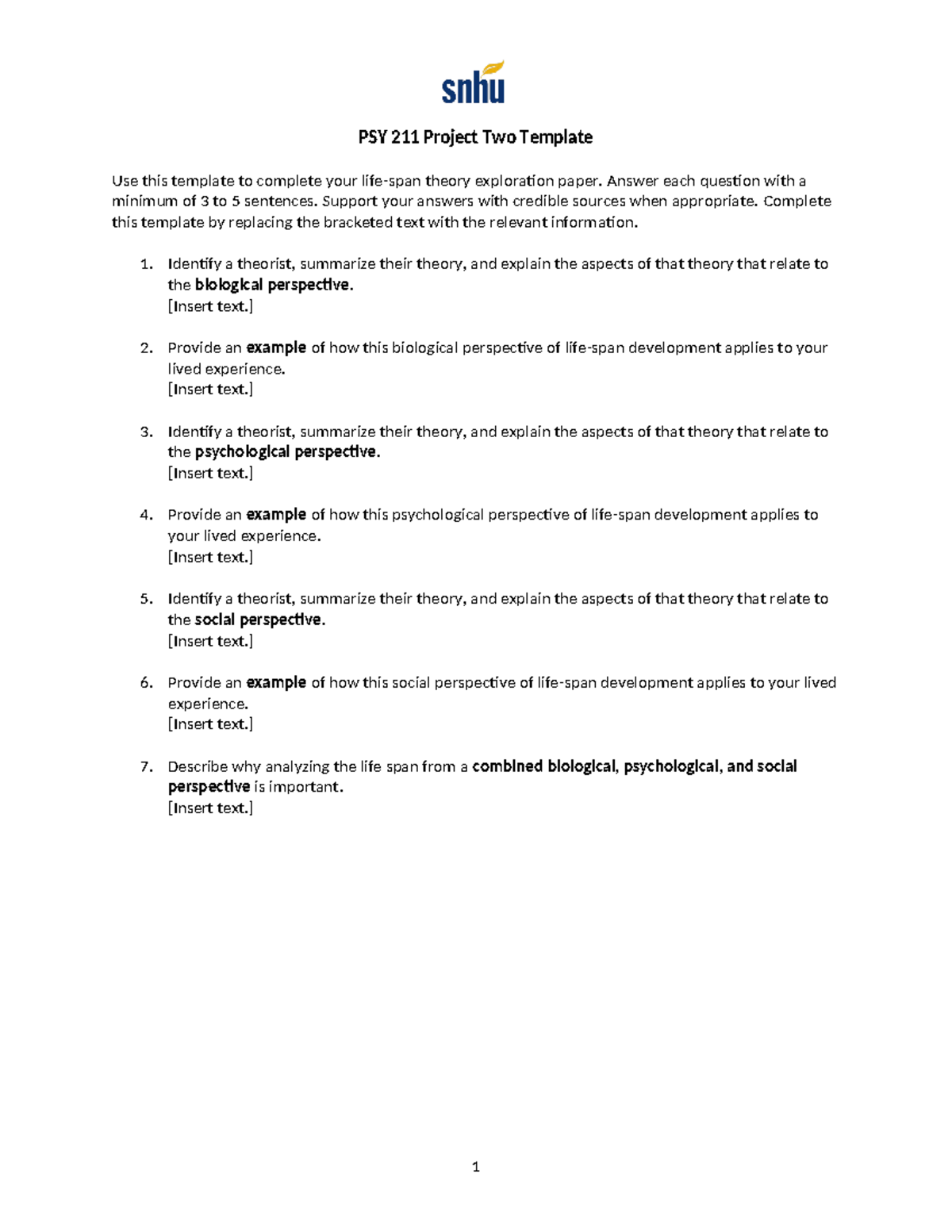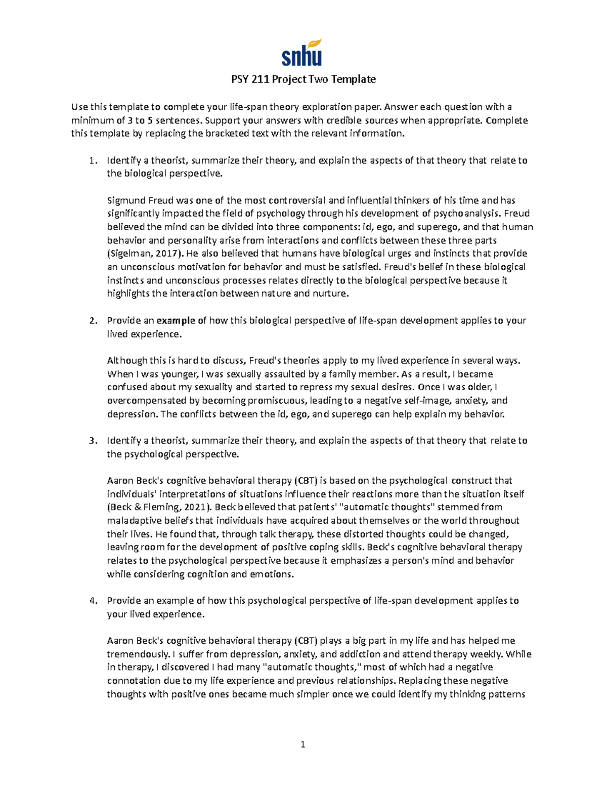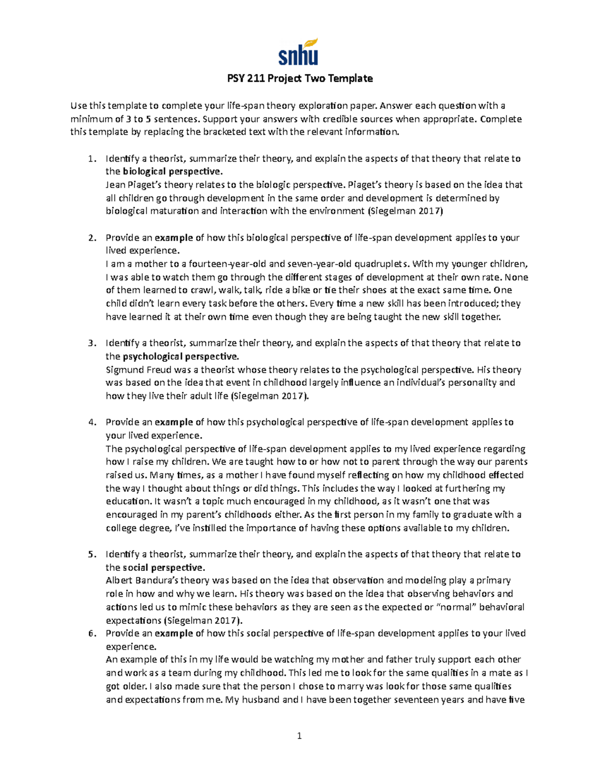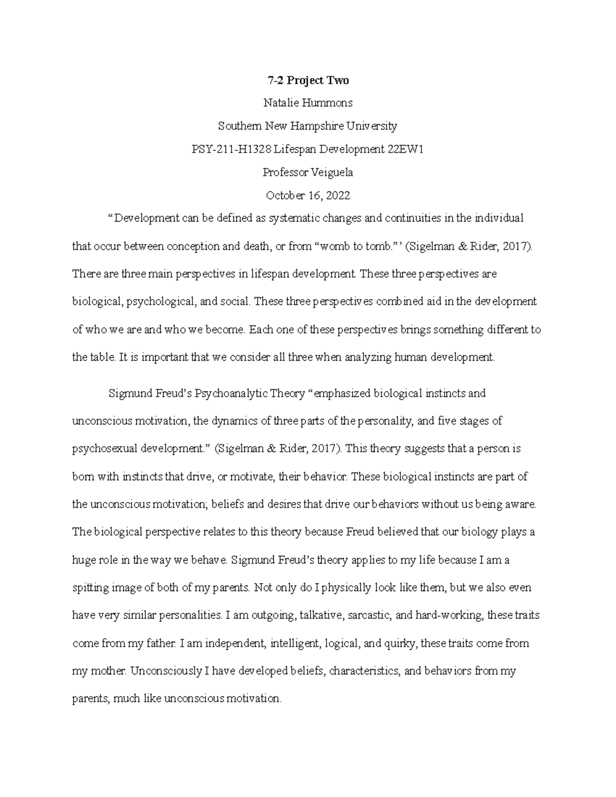 PSY 211 Project Two: Life Span Theory Exploration Template Studocu