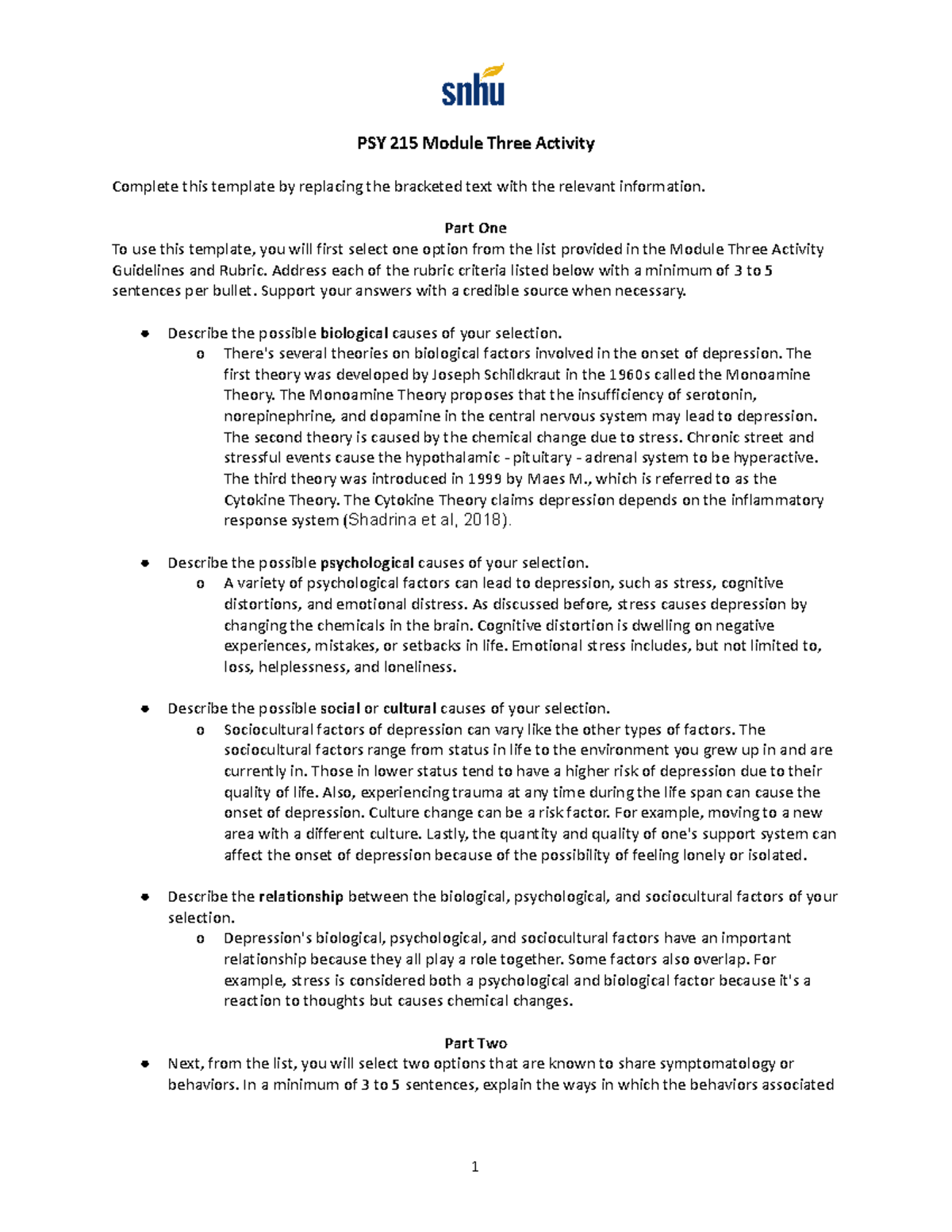 PSY 215 Module Three Activity Template PSY215 SNHU Studocu