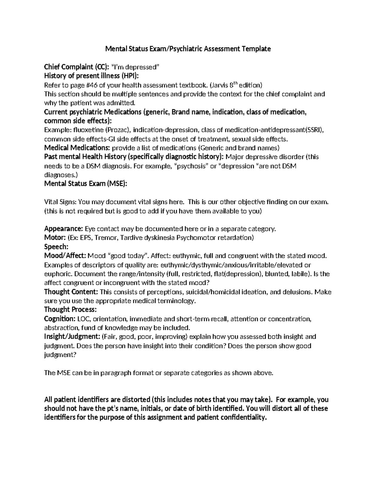 Psychiatric Assessment Psychiatric Evaluation Template