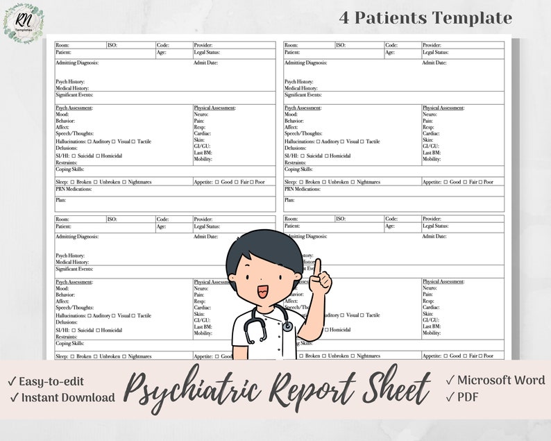 The BEST Psych Nurse Report Sheet for 4 Patients Psychiatric Etsy