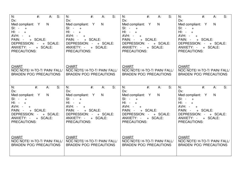 Psych Nurse Report Sheet for 3 or 6 Patients Nurse Brain Sheet
