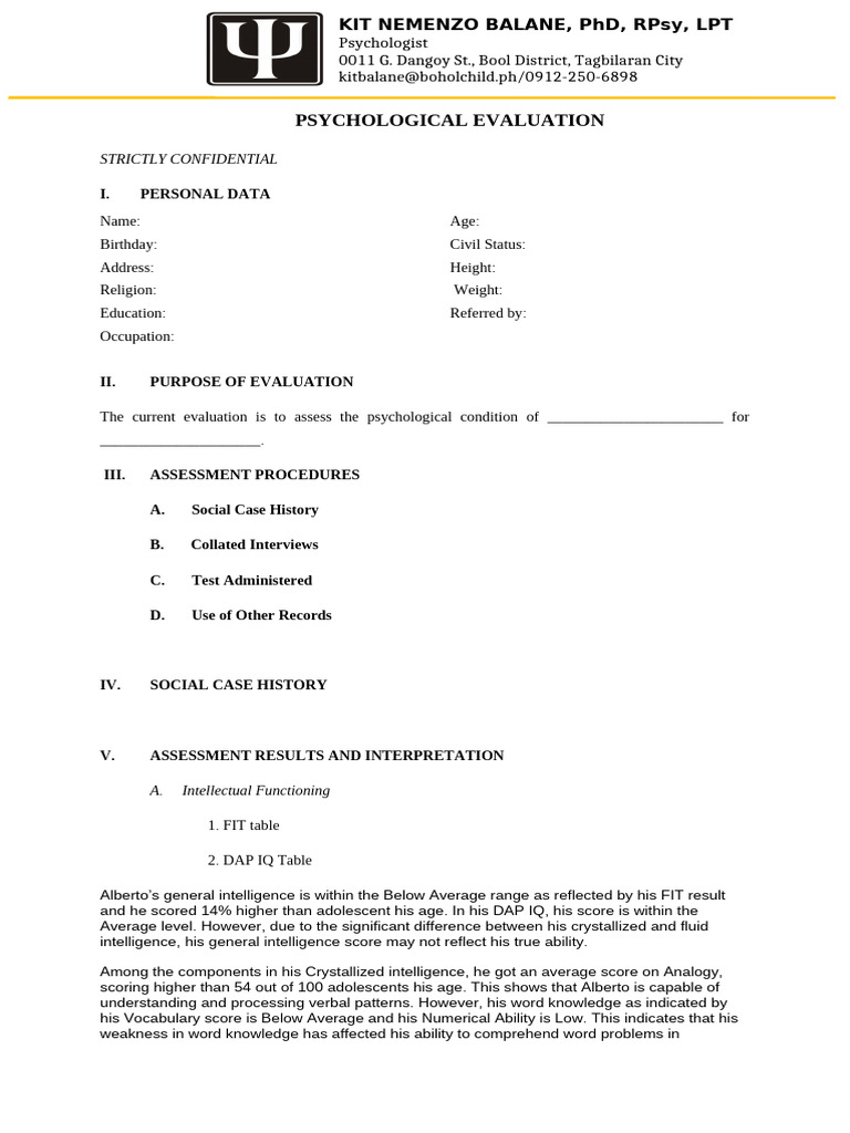 Here are some of the images for Psych Report Template that we found in our website database.