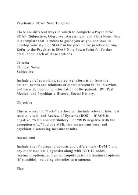 Psychiatric Notes Template