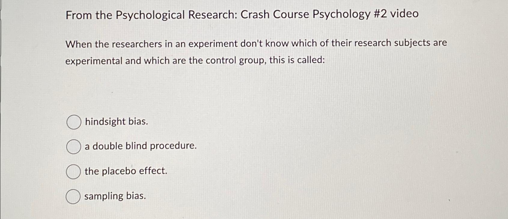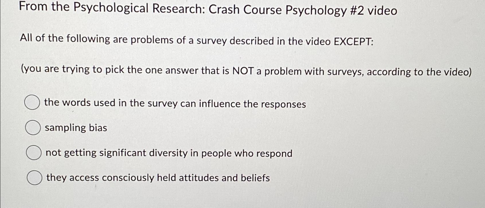Solved Psychological Research: Crash Course Psychology #2 ) Chegg com