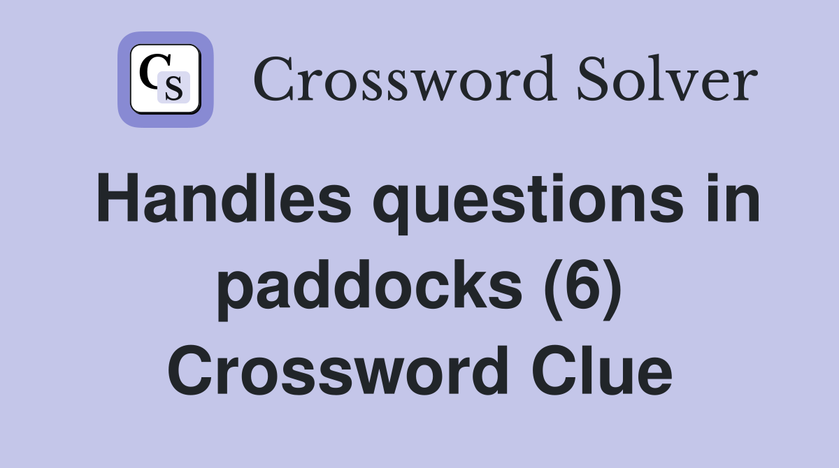 Handles questions in paddocks (6) Crossword Clue Answers Crossword