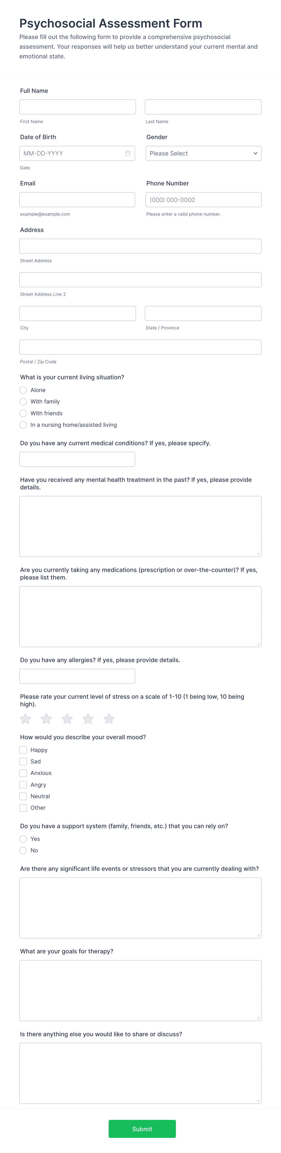 Psychosocial Assessment Template for Social Workers and Clinicians