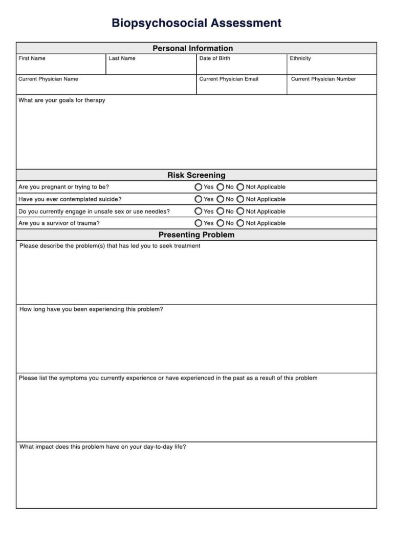 FREE 7 Sample Psychosocial Assessment Forms in PDF