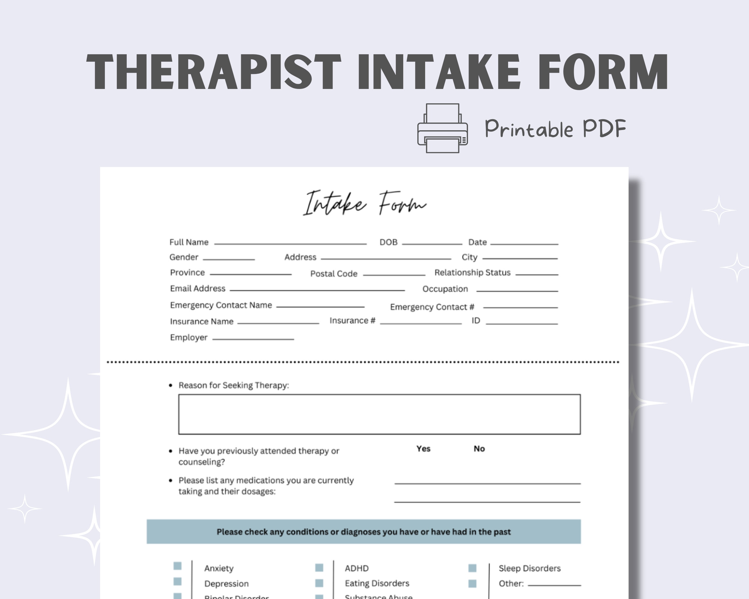 EDITABLE Client Intake Form for Mental Health Psychotherapy Template