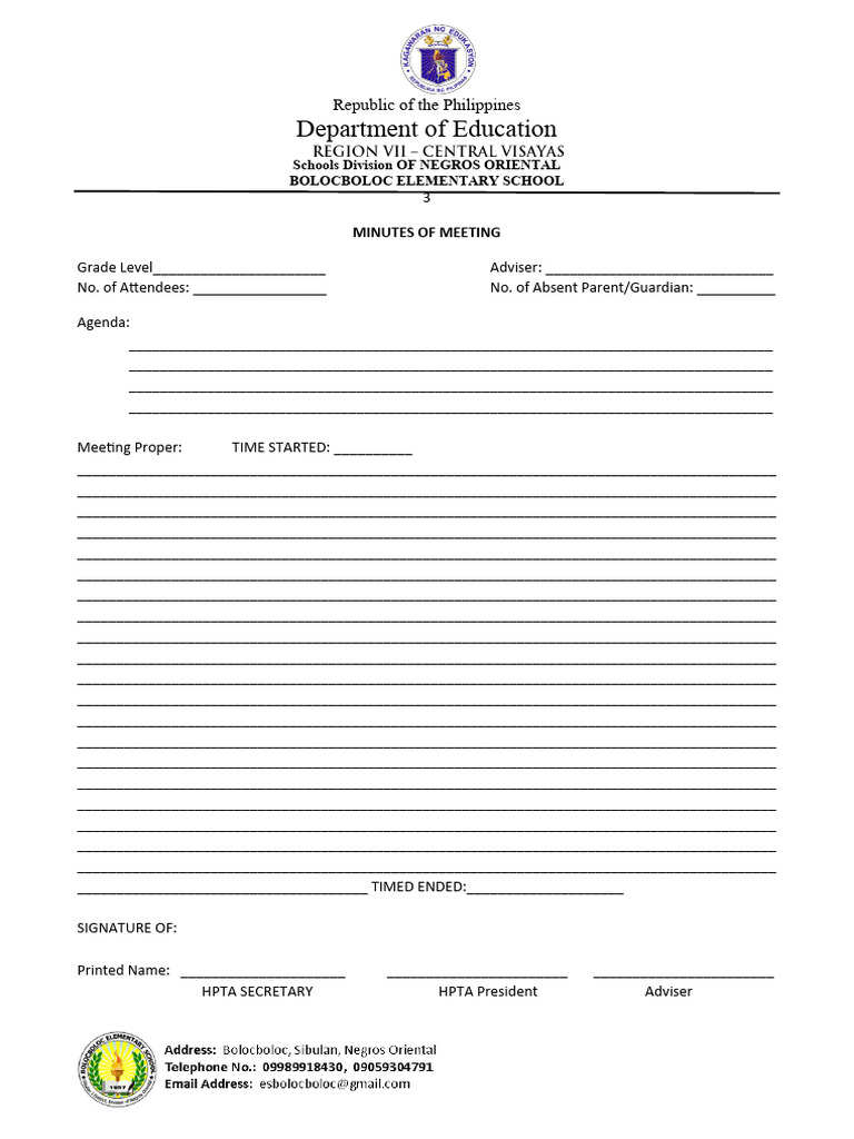 PTA Meeting Minutes Template Edit Online Download Example