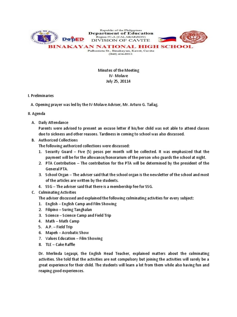 Pta Meeting Minutes Template Best Templates Resources