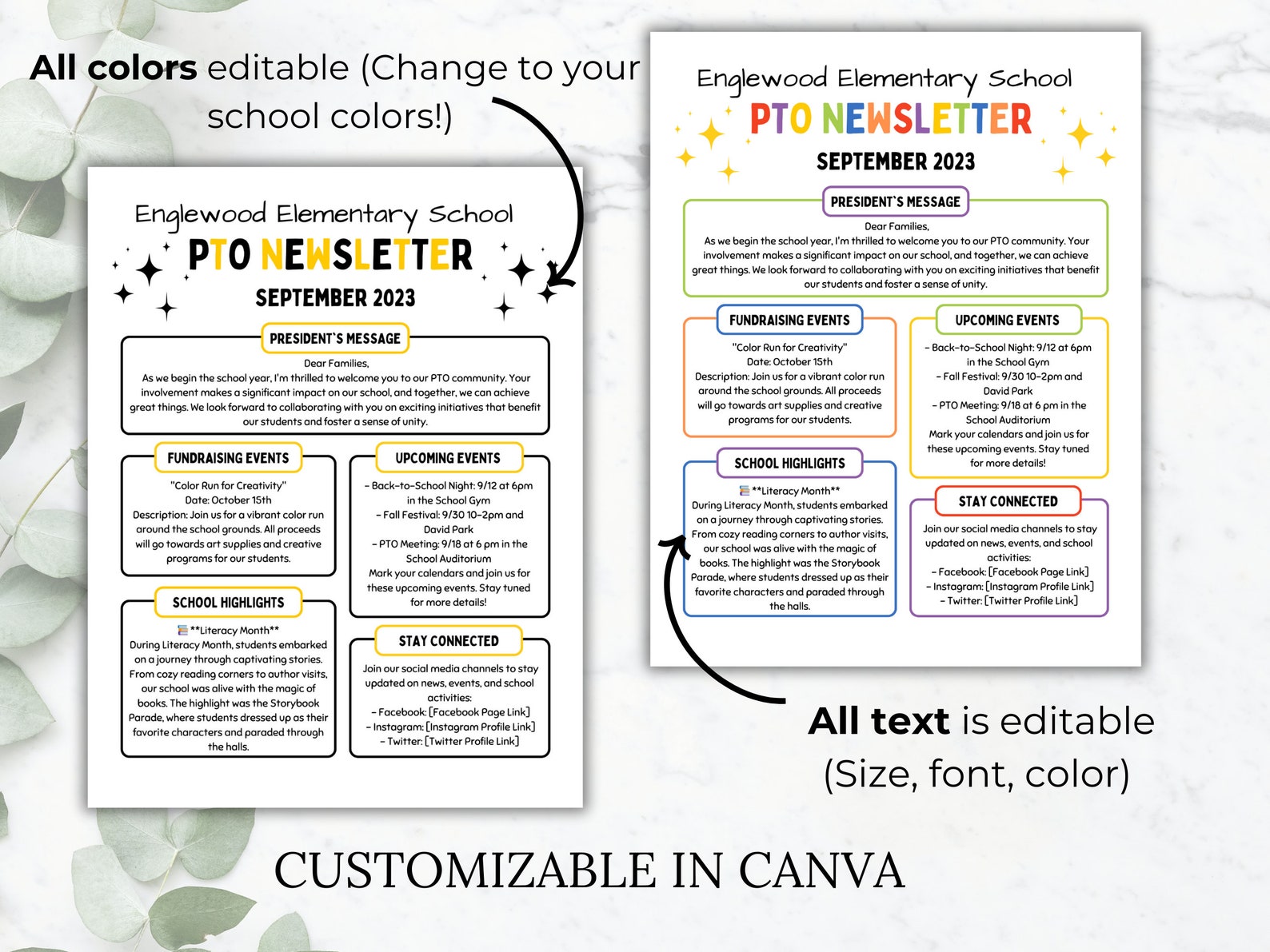 PTA Newsletter Fully Editable Template Edit in Canva Instant Download