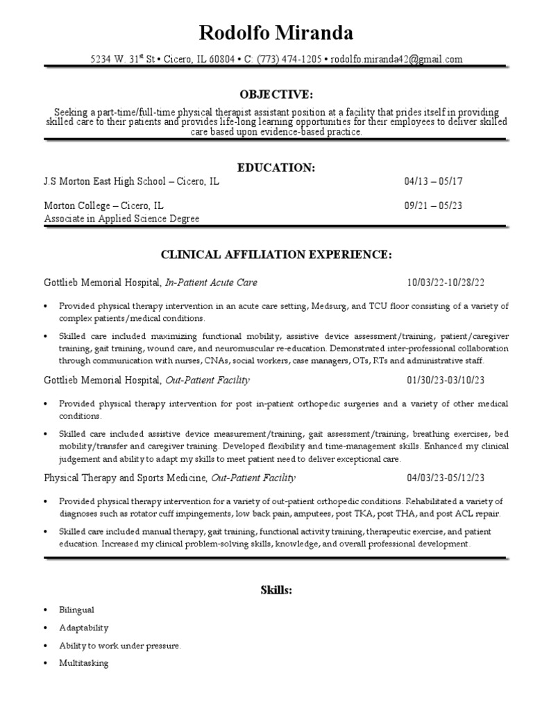 Pta Resume Template prntbl concejomunicipaldechinu gov co