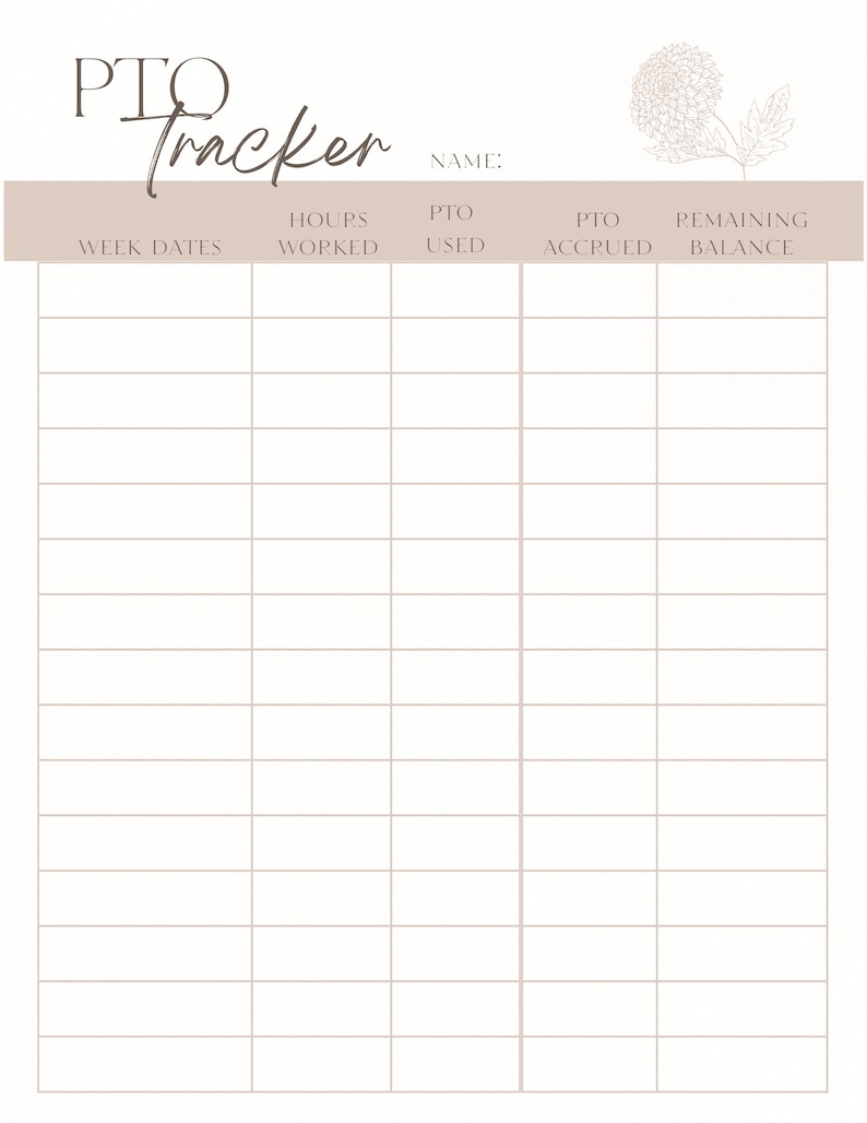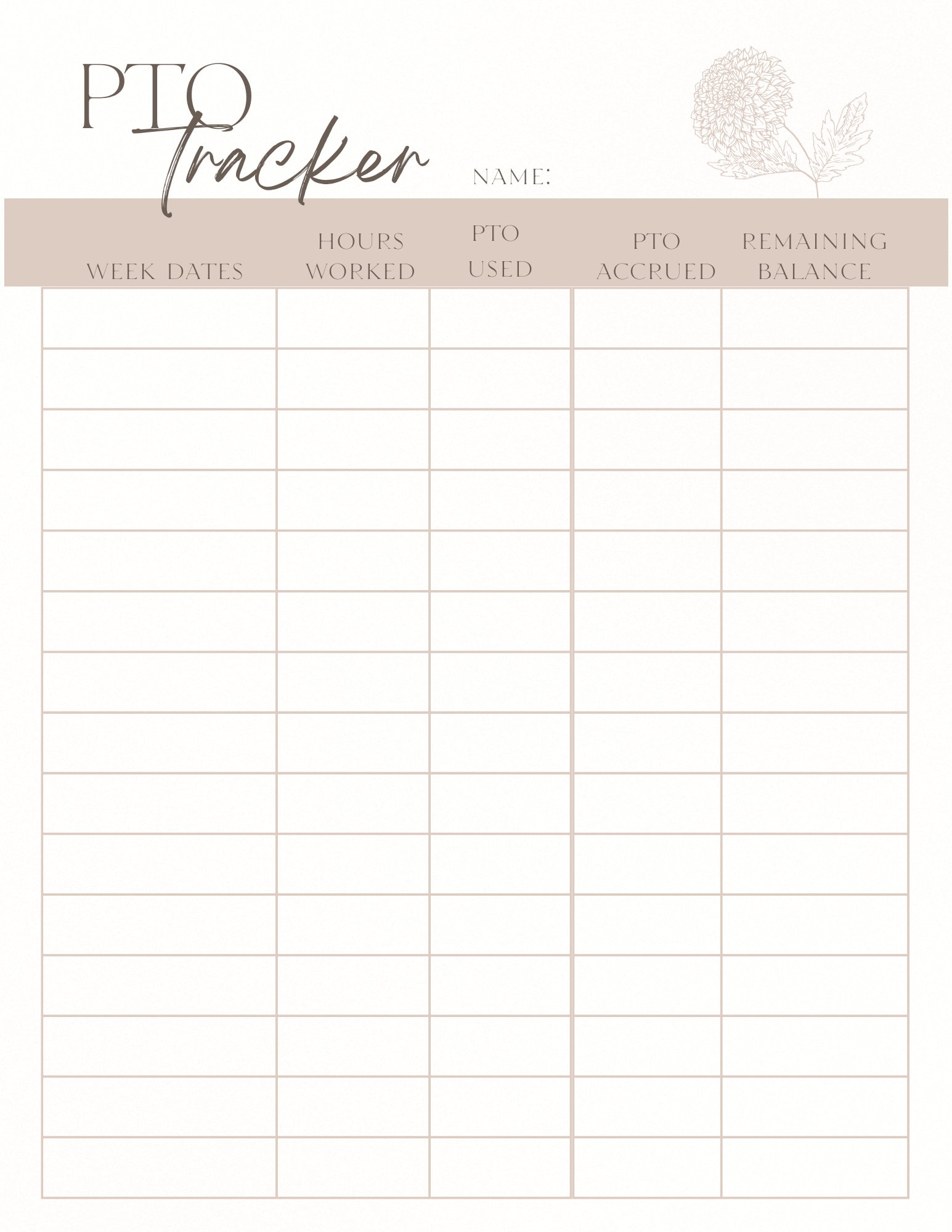 PTO Tracker Printable Absence Tracker Paid Time off Form Employee