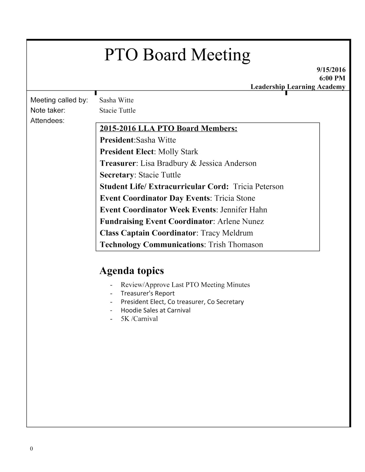 PTA meeting minutes Templates Pto Meeting Board Meeting Pta Board
