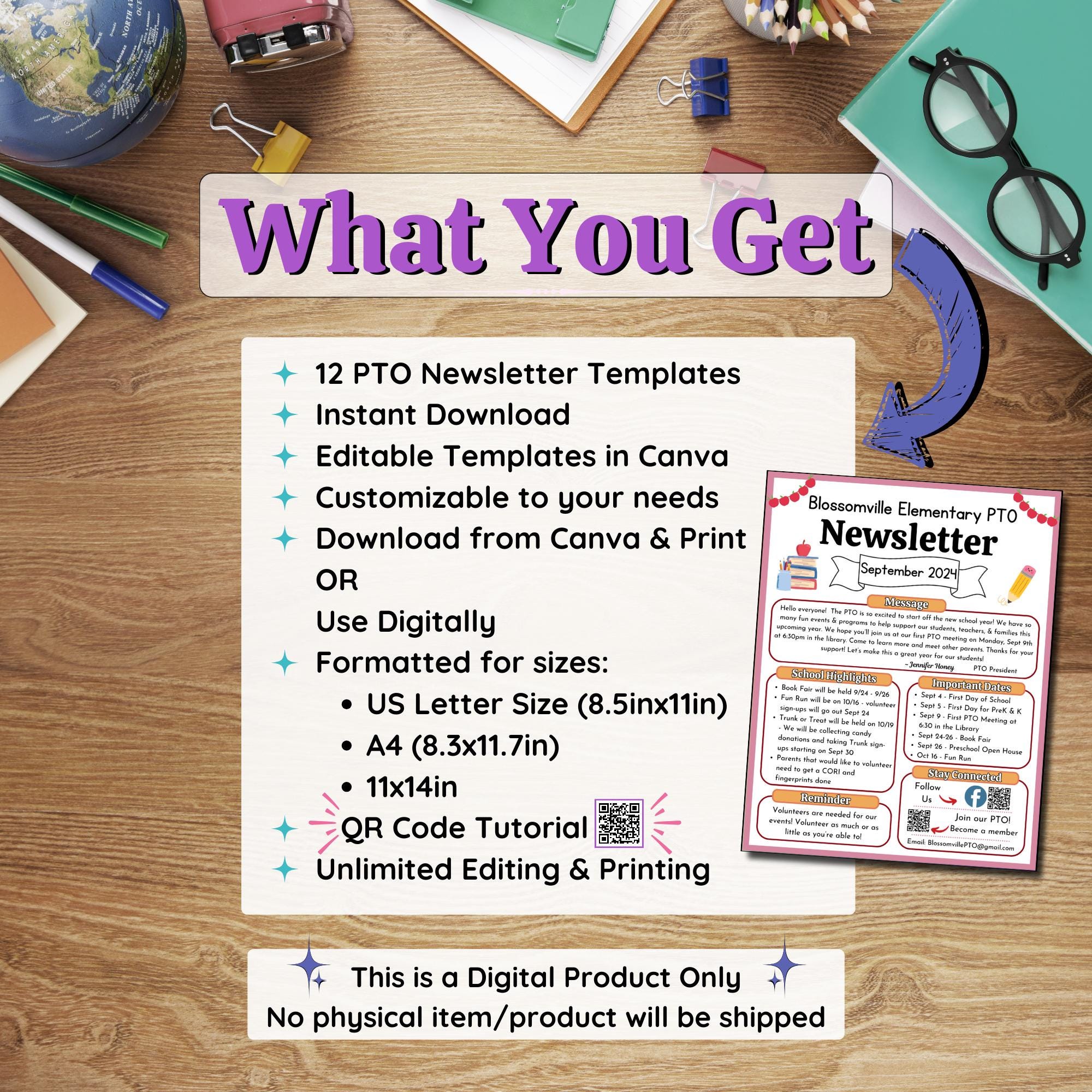 EDITABLE Yearly PTO Newsletter Template Set Monthly PTO Etsy
