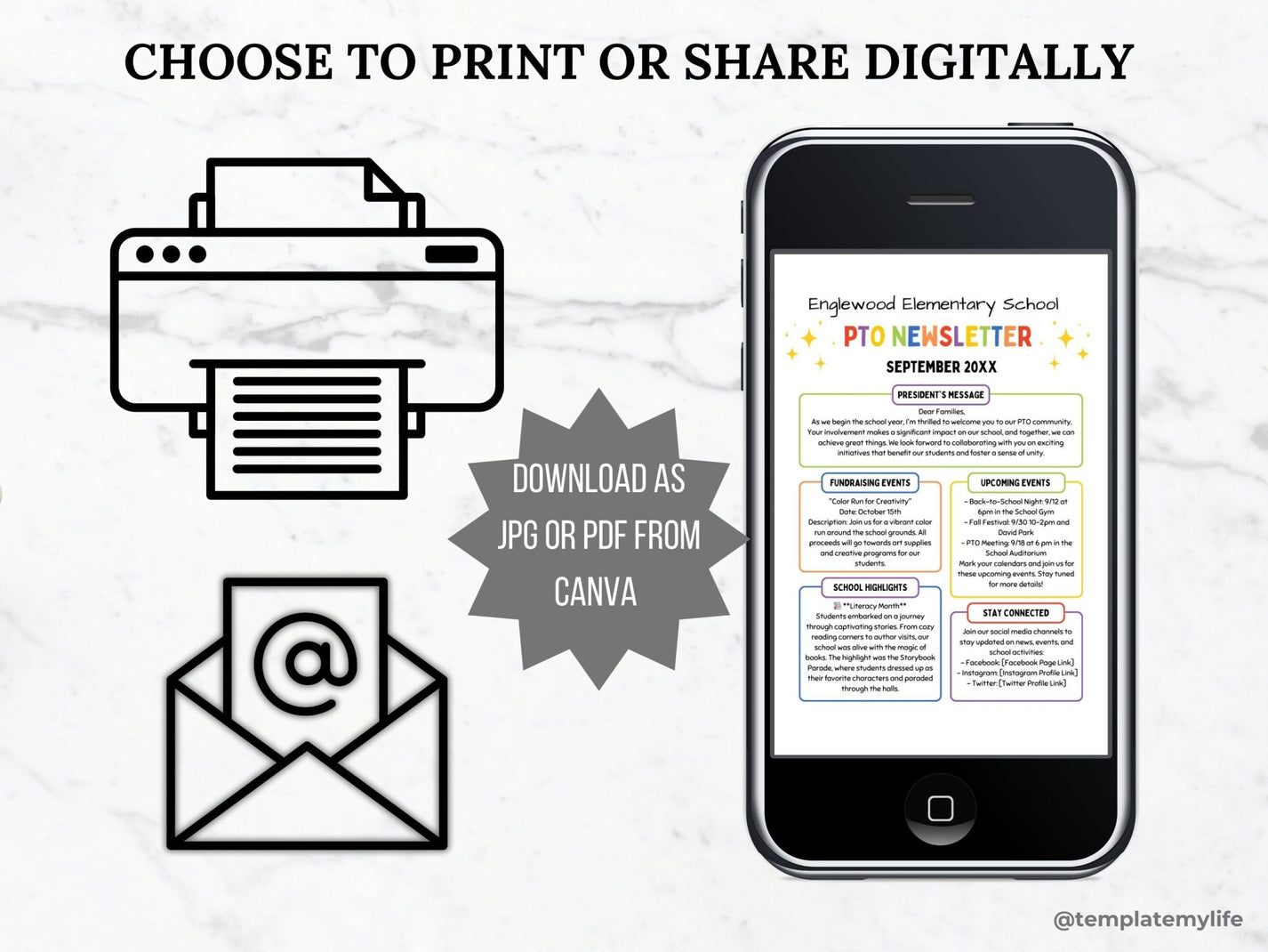 PTO Newsletter Flyer Template Editable School Monthly Newsletter for