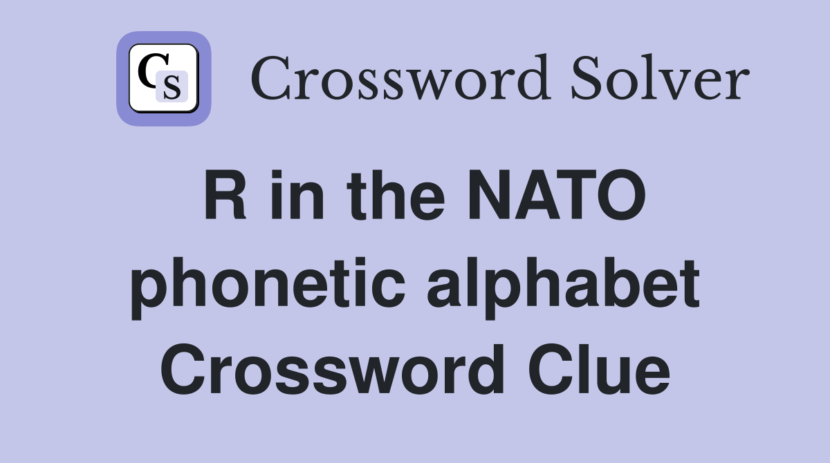 R in the NATO phonetic alphabet Crossword Clue Answers Crossword Solver