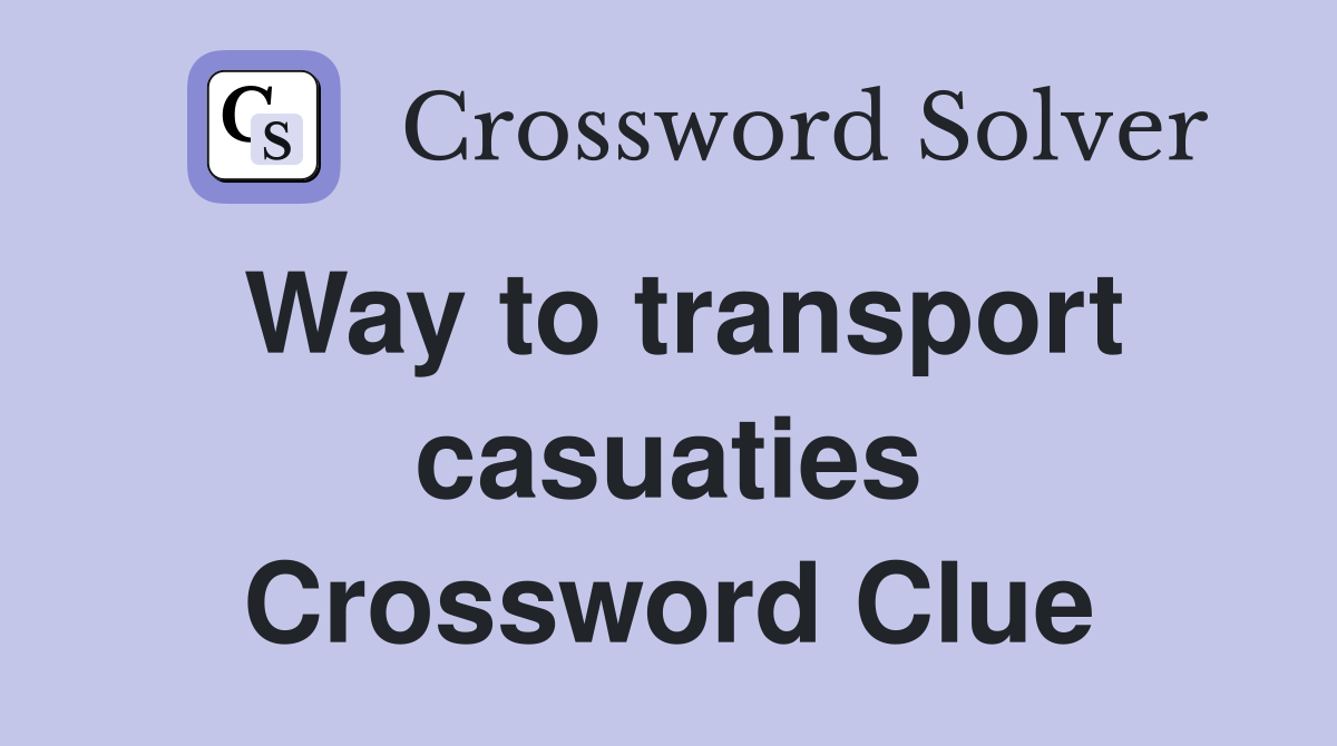 Way to transport casuaties Crossword Clue Answers Crossword Solver