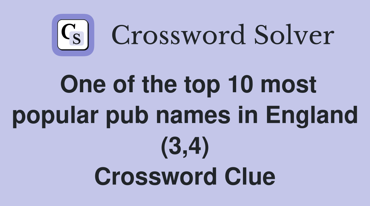 One of the top 10 most popular pub names in England (3 4) Crossword