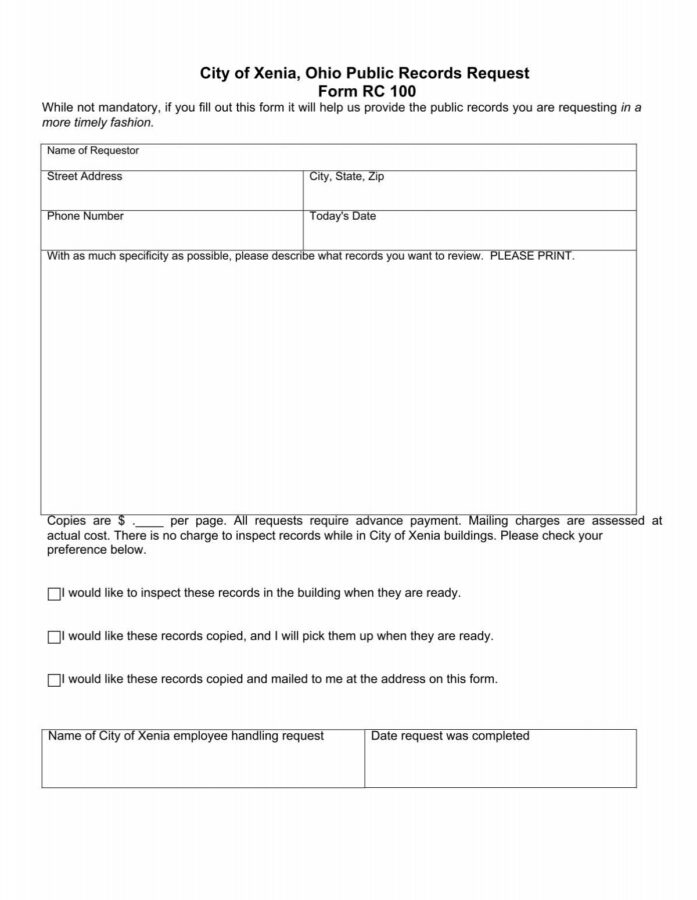 Ohio Public Records Request Template