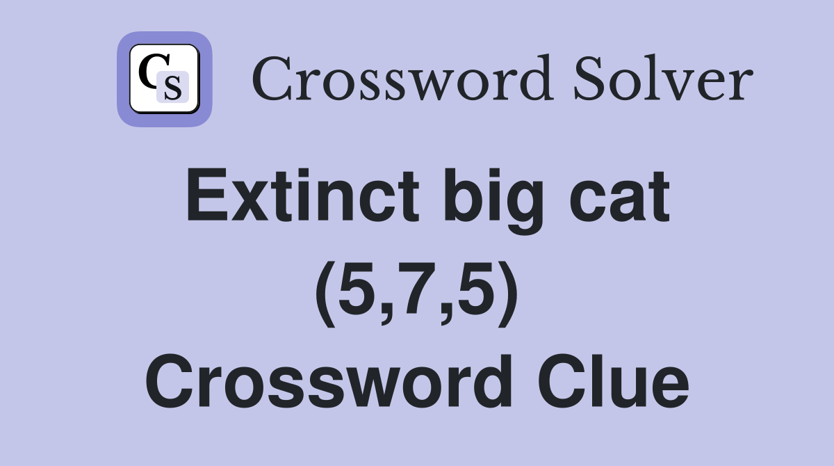 Extinct big cat (5 7 5) Crossword Clue Answers Crossword Solver