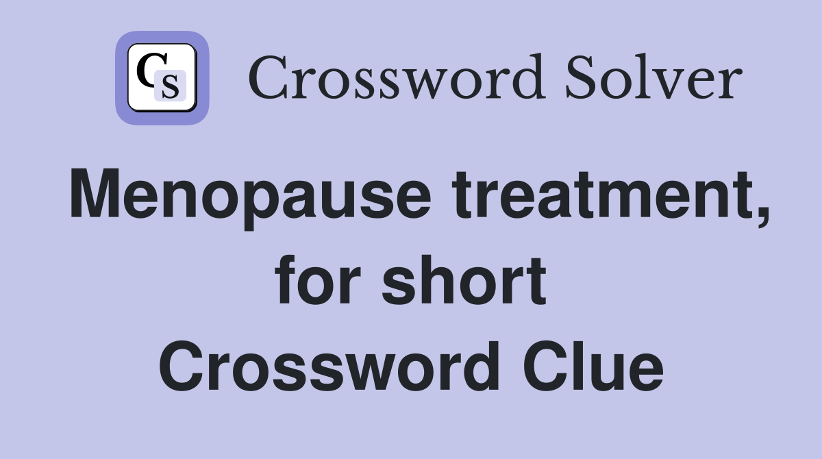 Menopause treatment for short Crossword Clue Answers Crossword Solver