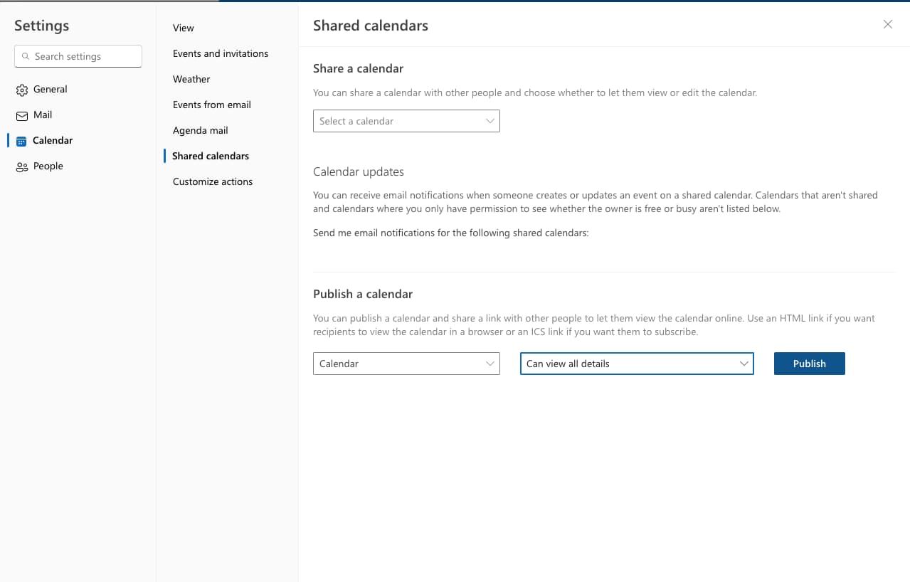 How to publish and embed your outlook calendar