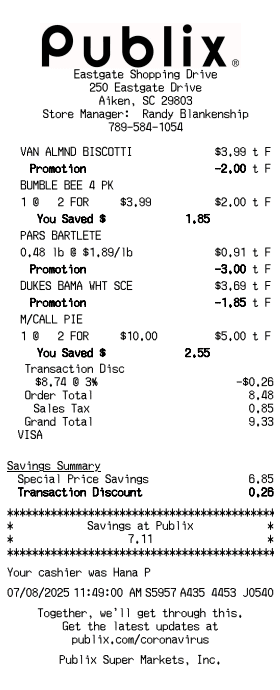 Publix Receipt Template
