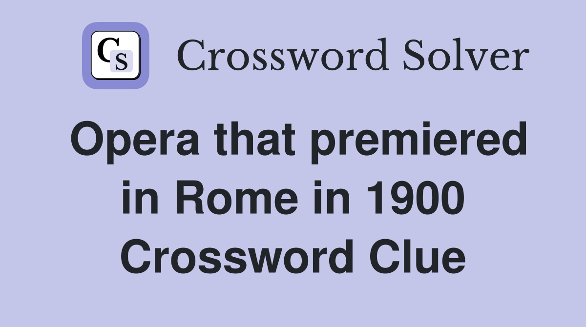 Opera that premiered in Rome in 1900 Crossword Clue Answers