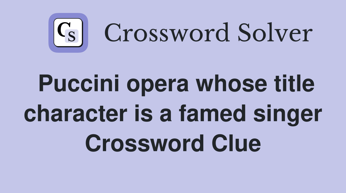 Puccini opera crossword clue 5 Letters JosephAnswers com