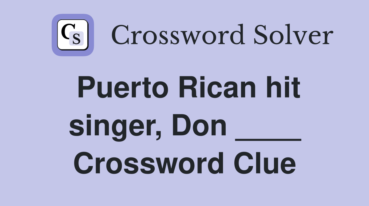 Puerto Rican hit singer Don Crossword Clue Answers Crossword