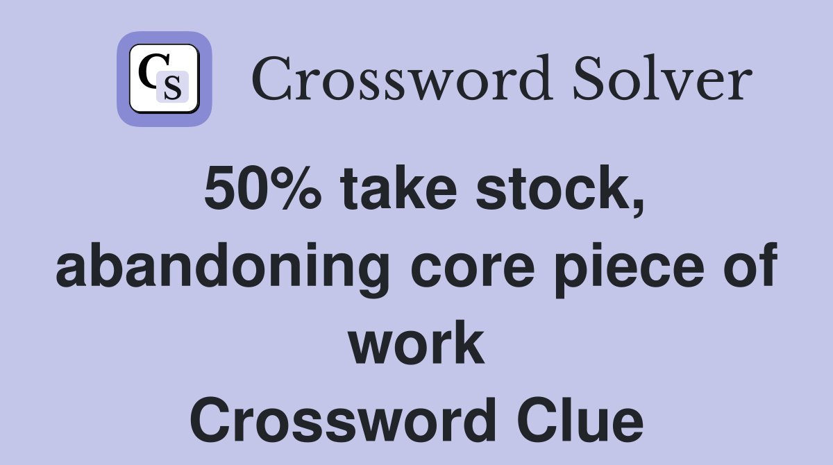 50% take stock abandoning core piece of work Crossword Clue Answers