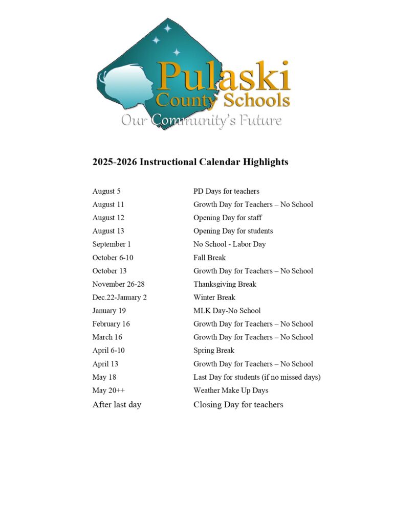 Pulaski County School Calendar 2025 26 Lilas Demetris