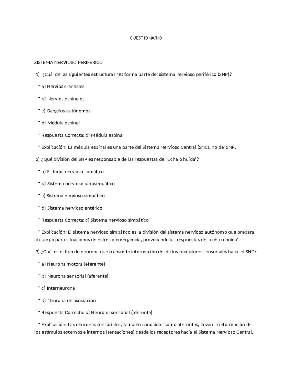 Cuestionario Sistema Nervioso Periférico Fisioterapia 1er Año Studocu