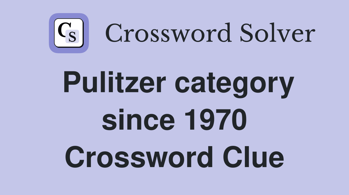 Pulitzer category since 1970 Crossword Clue Answers Crossword Solver